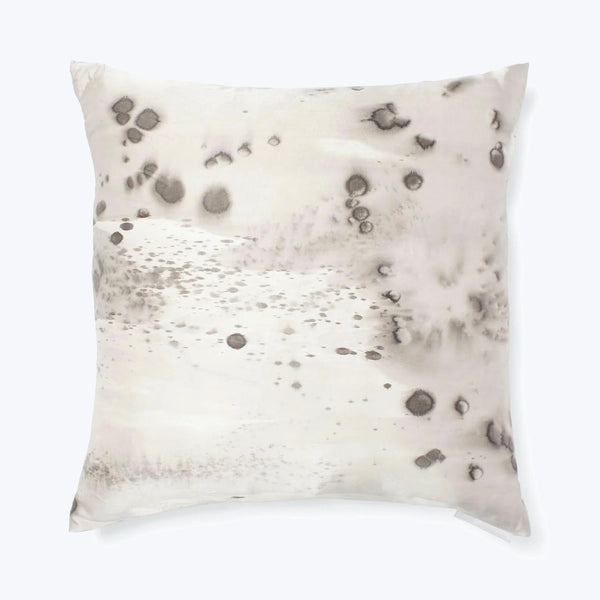 Grayscale dots are suggestive of rain drops on water in this shibori-dyed, silk-velvet pillow. Inspired by a delicate Japanese aesthetic, each handmade pillow evokes a Zen-like sense of balance and tranquility.