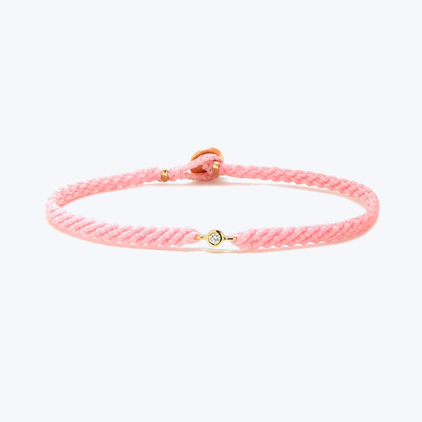Hand-woven using precious metal and gemstones, the Classic Diamond Bracelet symbolizes connection, community, and interconnectedness. Cast from solid gold set with a brilliant white diamond and created in a variety of colors, each diamond bracelet is braided by hand using a premium nylon cord and lightly coated with wax for a 100% water-resistant finish, so you can confidently wear your bracelet to shower, swim or surf. Scosha Jewelry is a colorful, creative combustion of art meets artifact with a signature...