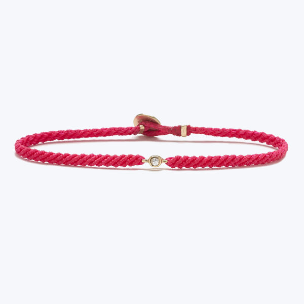 Hand-woven using precious metal and gemstones, the Classic Diamond Bracelet symbolizes connection, community, and interconnectedness. Cast from solid gold set with a brilliant white diamond and created in a variety of colors, each diamond bracelet is braided by hand using a premium nylon cord and lightly coated with wax for a 100% water-resistant finish, so you can confidently wear your bracelet to shower, swim or surf. Scosha Jewelry is a colorful, creative combustion of art meets artifact with a signature...