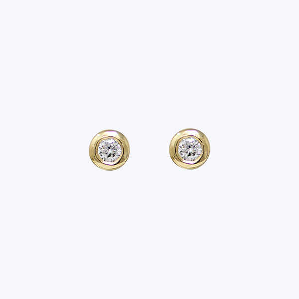These Art-Deco inspired micro studs crafted from 14K yellow gold are the ideal layering staple. Delicately mounted on a gold post is a dazzling diamond encrusted in a dainty bezel setting.