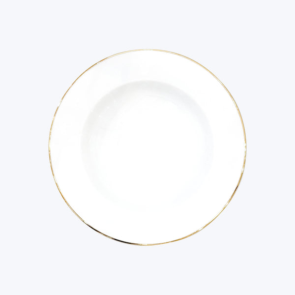 Discover the Concorde Pasta Bowl by Non Sans Raison. Handcrafted in high-quality Limoges porcelain, this beautiful bowl features a slender border in an extensive assortment of refined hues. Choose from Black, Empire Green, Gray, Gold, Navy Blue, Orange, Platinum, and Rose. Made in France. Pair with the Concorde Salad Plate and the Concorde Dinner Plate.