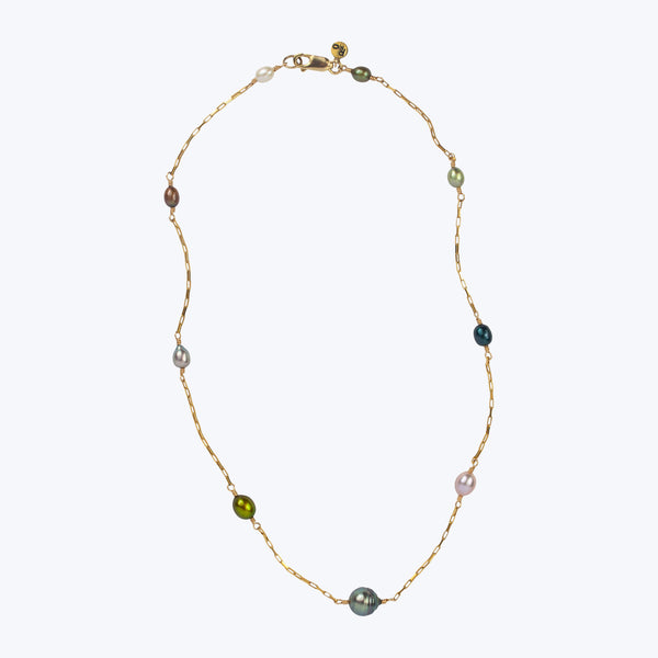 Refined in design and playful in palette, the Constellation Necklace by Presley Oldham offers a modern take on traditional pearl jewelry. This gorgeous necklace features an array of freshwater pearls dotted along a 14K gold chain. Wear it solo or layer it with other slender gold chains. Made in the USA.