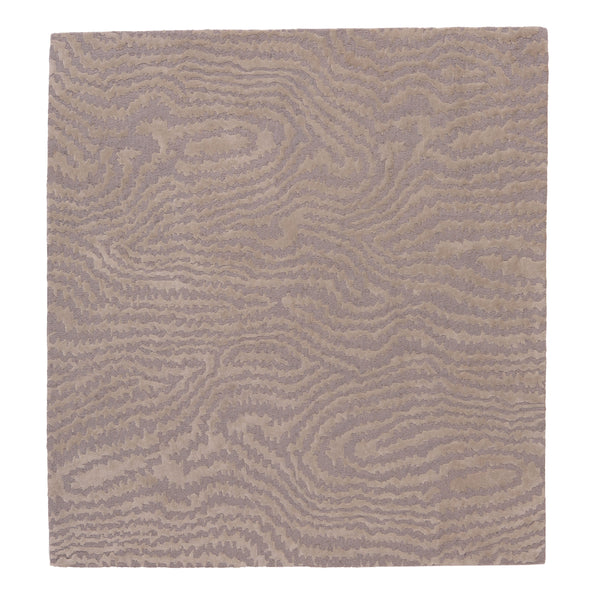 The Beige Modern Wool Silk Blend Rug - 5' x 5'5" features a soft, neutral color palette with a repeating wavy pattern reminiscent of topographical lines. Hand-knotted in India from luxurious wool and silk, this high-quality rug offers a tactile dimension with its soft pile. Perfect for adding a touch of elegance to any interior decor style.