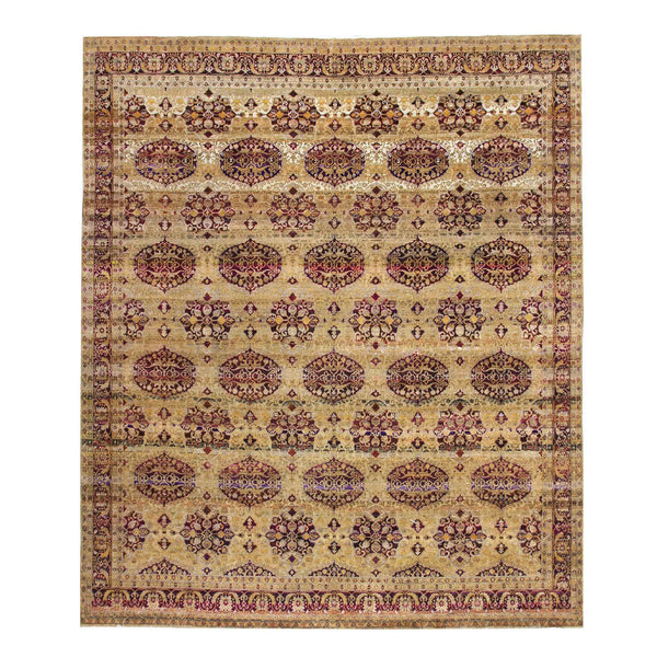 Gold Traditional Wool Silk Blend Rug - 12'2" x 12'2"