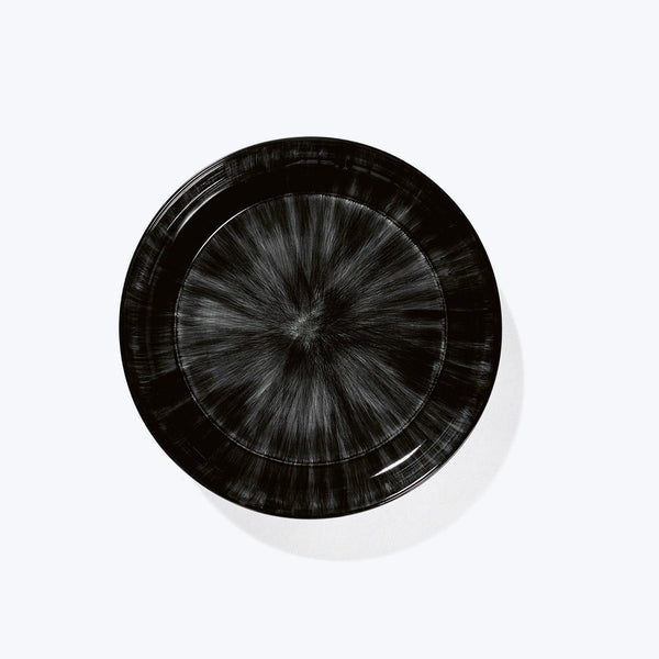 The De dinnerware collection plays with light and shadow through the painted black and white hues on porcelain. The edges of each porcelain piece are hand-painted in several layers to create a meticulous interplay of lines, giving your table an elegant yet eclectic look. This collection was designed in Belgium by Ann Demeulemeester in collaboration with Serax.