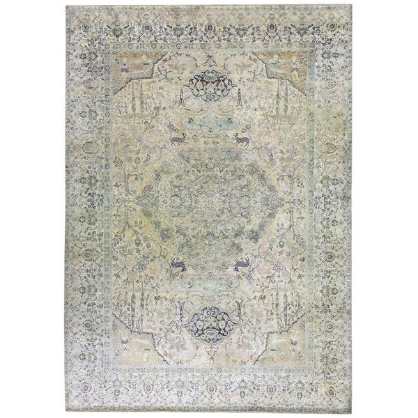 This Cream Alchemy Traditional Silk rug from India is an exquisite addition to any home. Hand knotted from luxurious silk, this 8'7" x 12'5" rug features a beautiful color palette and intricate pattern. The smooth texture and high quality craftsmanship make it a timeless piece for any space.