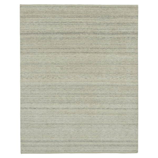 This Grey Textured Wool rug is a sophisticated addition to any space. Hand-knotted in India from luxurious wool, this 8' x 10' rug features a subtle striped pattern in a muted greyish-beige palette. The soft and plush texture adds an elegant touch to your home decor.