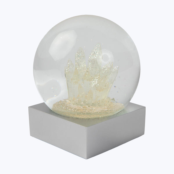This Crystals Snow Globe is a beautiful gift or trinket for your desk or decor collection. Often called the "love stone," rose quartz is said to bring peace and calm, emotional balance, and stress relief—things we can all benefit from. Take a moment to gaze into our soothing water globe modeled from actual crystal formations showered in silver light. This snow globe is gorgeous against twinkling holiday lights or year round. Glass snow globe with rose quartz crystal interior and...