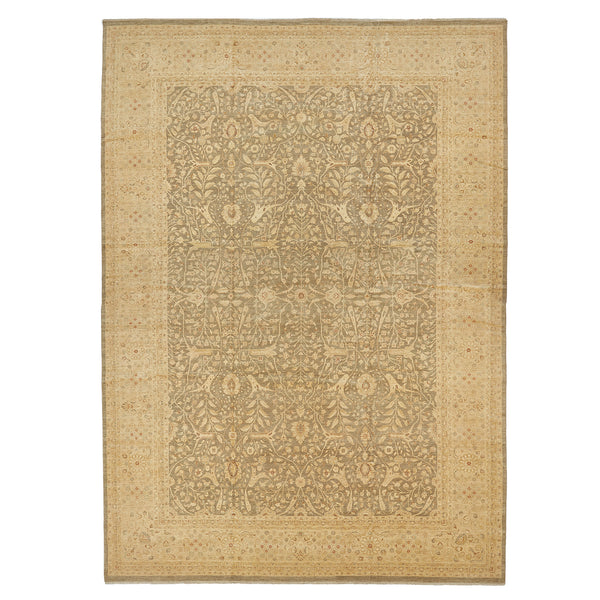 A grand expanse of art underfoot, this substantial Beige Traditional Wool Rug stretches across your space, its dimensions—13'9" by 19'6"—commanding immediate attention. Every inch tells a story of elegance rooted in tradition, where muted, earthy hues reminiscent of soft sage or light taupe blend seamlessly with delicate beige botanical motifs. The wide border, a brighter natural beige, frames the intricate design with a crisp elegance that complements both classic and transitional decor with effortless grace. Hand-knotted in Pakistan, this rug...