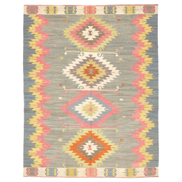 Multicolored Turkish Flatweave Wool Rug - 8'1" x 11'4"
