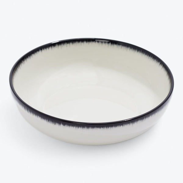 The De dinnerware collection, a take on chiaroscuro, plays with light and shadow through the painted black and white hues on each porcelain piece. The edges of piece feature a "degrade" painted by hand in several layers to create a meticulous interplay of lines. Each piece is truly unique, giving your table an elegant yet eclectic look. This collection was designed in Belgium by Ann Demeulemeester in collaboration with Serax.