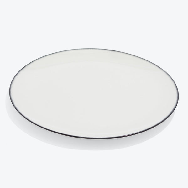 The De dinnerware collection, a take on chiaroscuro, plays with light and shadow through the painted black and white hues on each porcelain piece. The edges of piece feature a "degrade" painted by hand in several layers to create a meticulous interplay of lines. Each piece is truly unique, giving your table an elegant yet eclectic look. This collection was designed in Belgium by Ann Demeulemeester in collaboration with Serax.Can be used as either a dessert plate or salad plate,...