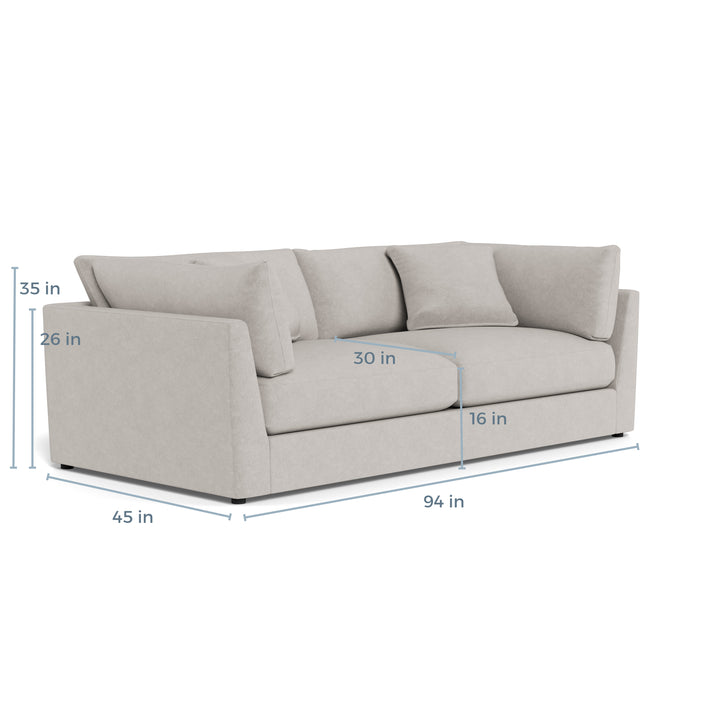 - Dimensions 94" W x 45" D x 35" H | Seat Height: 16" H | Seat Depth: 30" D | Back/Arm Height: 26" H