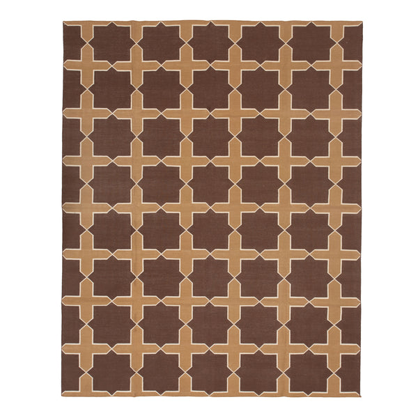 Brown Geometric Dhurrie Cotton Rug - 7'10" x 9'10"