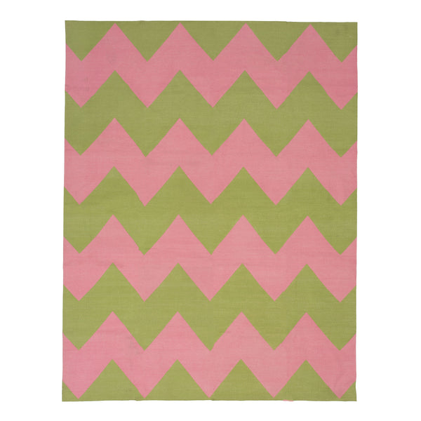 Pink & Green Chevron Dhurrie Cotton Rug - 8'10" x 11'10"