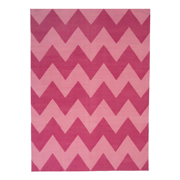 The Pink Chevron Dhurrie Cotton Rug speaks with a boldness that transforms any space it claims. At 10' x 14', this hand-woven piece from India is a canvas of artistry, designed to both entice and invigorate. Its chevron pattern, a dance of soft pink interposed with vibrant fuchsia, injects a lively rhythm into hushed corners or vast open expanses. The geometry is crisp, a contemporary statement writ large underfoot. This rug whispers the practicality of cotton with every step. Its...