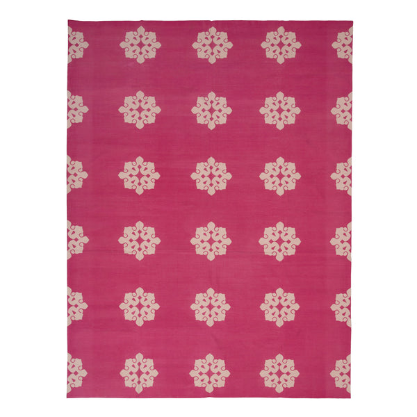 Elevating without being overwhelming, this Pink Floral Dhurrie Cotton Rug - 10' x 14'19" features a simple yet sophisticated floral design with a balanced layout. Handwoven in India, this flatweave rug is a durable addition to your home with its low pile and reversible capabilities.