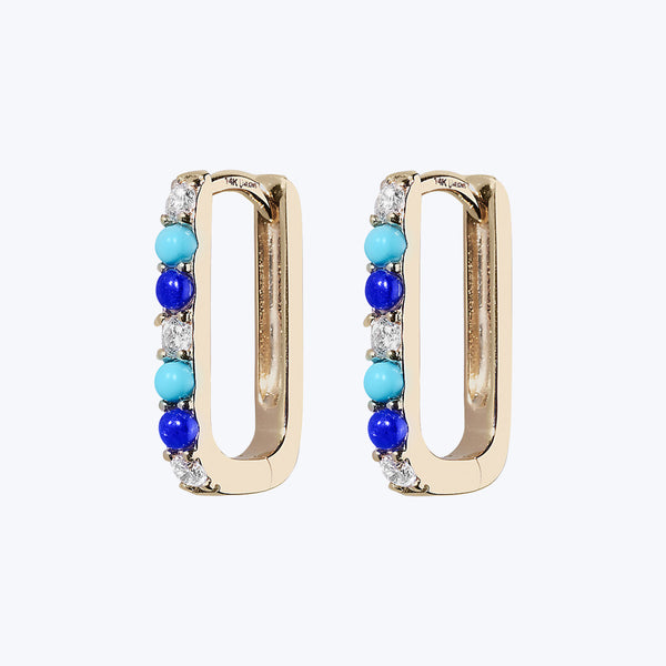 Diamond, Lapis + Turquoise Small Paperclip Hoop Earring