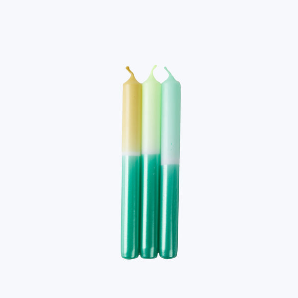 Brighten up your entryway or dinner party table setting with this set of 3 dip-dyed taper candles. Pink Stories Candles are handmade, making each color the same but every pattern special and unique. Dyed in cooperation with social institutions in the beautiful foothills of the Alps. 100% Vegan.