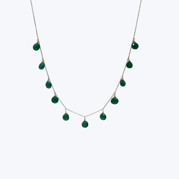 A delicate diamond chain with briolette charm stations is the perfect layering piece. 16" Necklace fastens with a lobster clasp and has two 1" adjustments to make it 14" or 15”.