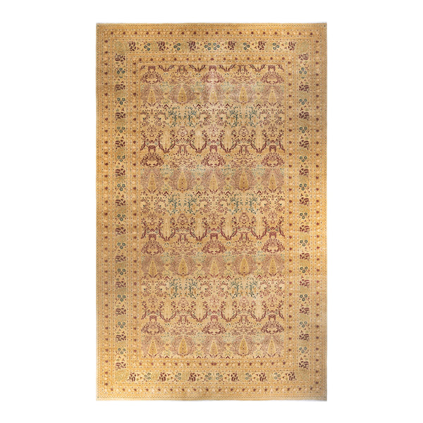 This Yellow Traditional Wool Rug is an orchestra of craftsmanship and style. Unfurled at 12 feet 1 inch by 20 feet, it demands attention in the grandest of spaces—a living room, a dining enclave, or the sprawling canvas of an open-concept home. A muted yellow, nearing antique gold, unfurls as its base—a wrap of warmth that invites one in. Across this golden expanse, intricate patterns meander with purpose. The rug’s design marries the time-tested appeal of traditional motifs with a...