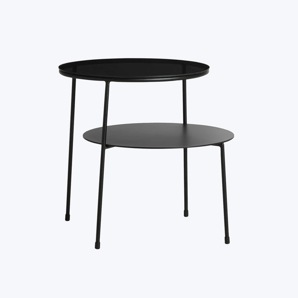 The Duo Side Table, designed by Chifen Cheng, is inspired by 'Vesica Piscis' - the shape of two overlapping circles with the same radius. This innovative design converts a geometric composition into a table that captures glimpses of light with its smoked glass tabletop. The metal frame supports the two tabletops in a delicate yet sturdy fashion, offering an appearance of tranquility.