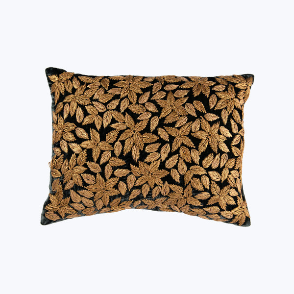 The Enny Lumbar Pillow by Anke Drechsel is a standout example of the German textile designer’s masterful craftsmanship. Featuring a striking gold leaf pattern hand-embroidered by skilled artisans, this decorative pillow is crafted in Drechsel’s signature high-quality silk velvet. A statement piece that will elicit awe and envy for years to come.