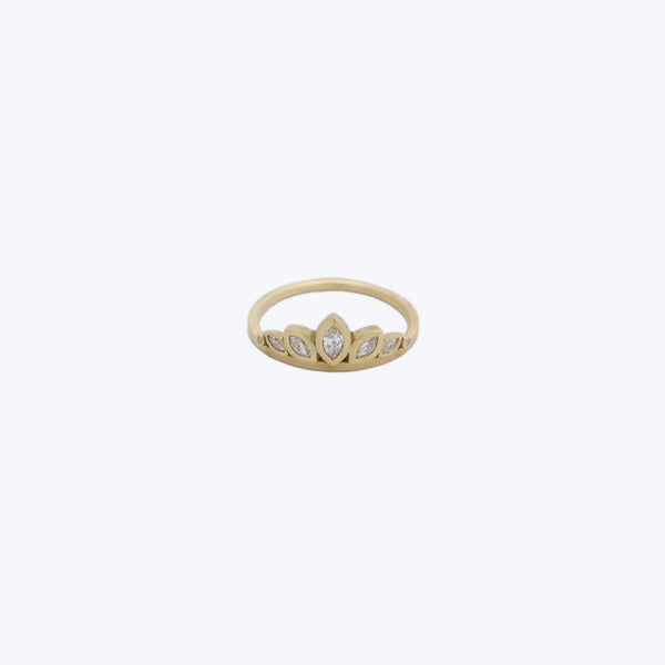 This Full Lotus Diamond Band is a very special ring featuring marquise diamond petals flanked by tiny round diamonds set in 18k yellow gold. This handmade band makes a stunning engagement ring, wedding band, or special occasion ring that stacks beautifully with others from Ananda Khalsa or different ring brands. 2mm band with 5mm, 4mm and 3mm diamond lotus petals. Size 6.Ananda Khalsa draws inspiration from natural forms and the vibrant luminosity of natural gemstones. She strives to capture the...
