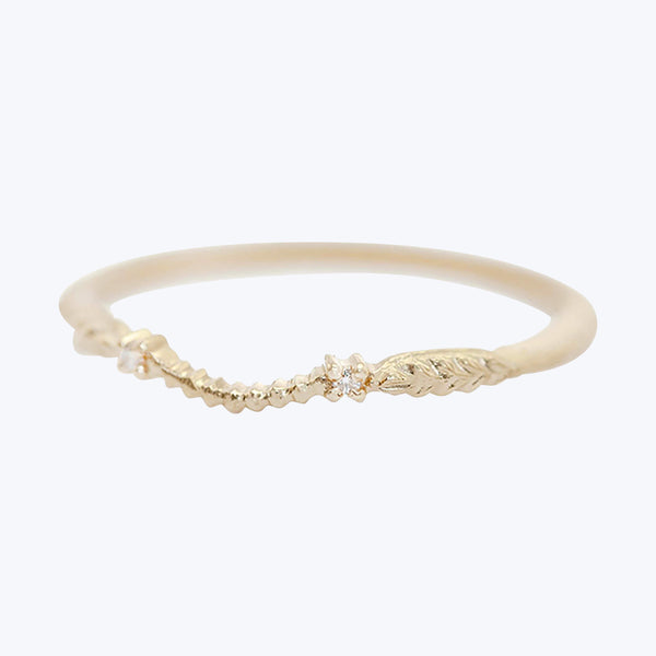 The beloved botanical-inspired Evergreen Guard Ring features hand-carved details in recycled 18k gold accented by glimmering dewdrop diamonds (.03tcw). A slightly curved shape creates a cradle for your engagement ring while maintaining flexibility to be worn alone or as a stacking ring. Finished with Megan Thorne's signature matte finish and polished, hand-carved details. Size 6. Please contact us to special order for other sizes. Meet the Maker: Working as a small but mighty team of makers based out of Fort...