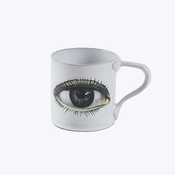 A John Derian x Astier de Villatte collaboration, this ceramic eye mug is handmade in an antique Bastille workshop in Paris Ñ putting forth a one-of-a-kind object both romantically bohemian and practical in its everyday use. Hand-molded from black terracotta and finished in a milky-white glaze that highlights the unique character of the clay, this ceramic piece is then emblazoned with the iconic work of decoupage artist John Derian, showcasing the visually stimulating beauty of the human eye through simple...