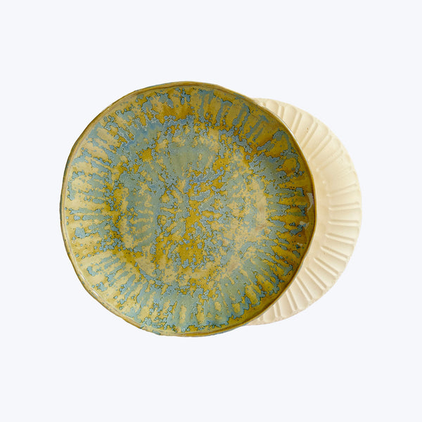 Hand-casted out of the iconic shape & size of a classic paper plate, this faceted ceramic plate by Beiko Ceramics is an artistic gesture to level up from the disposable to the long-lasting. Glazed in a dreamy blue nebula hue. 11.5' diameter The brainchild Rita Seiko Payne, Beiko Ceramics is a small-batch pottery studio based in Upstate New York that reimagines the beauty of the everyday. All of her ceramics are hand-casted out of locally-sourced objects to create a line...