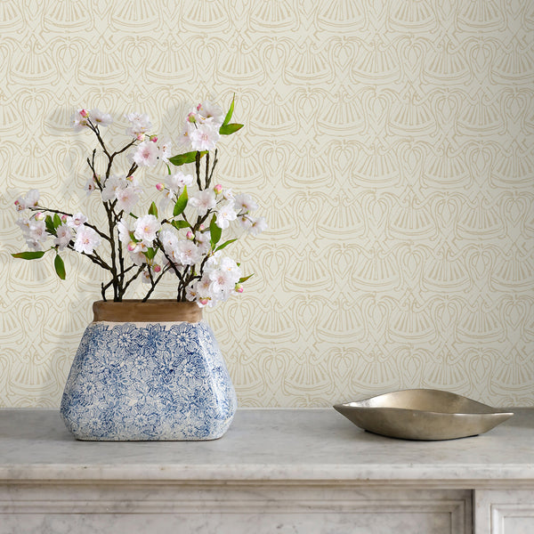 Add whimsy to your walls with Yuki Osada’s Fans and Bows wallpaper. Evoking the Victorian era’s voluminous skirts, this elegant wallpaper has an elevated old-world feel, making it a perfect choice for romantic and antique-furnished interiors. Available in Black on Charcoal, Dark Turquoise, and Tan on Cream. Yuki Osada is a celebrated CAD designer, graphic artist, and illustrator known for her playful prints.