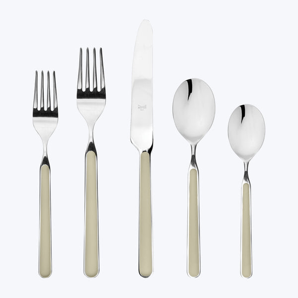An exquisite blend of color and form, Mepra’s Fantasia Flatware is a study in Italian sophistication. This elegant set is crafted in Italy in the finest 18/10 stainless steel and resilient resin. The Fantasia’s graceful, rounded silhouette makes it perfectly suited to sleek, contemporary dining spaces. The set’s knives are designed with double serration. Choose from an extensive range of colors. Dishwasher safe.