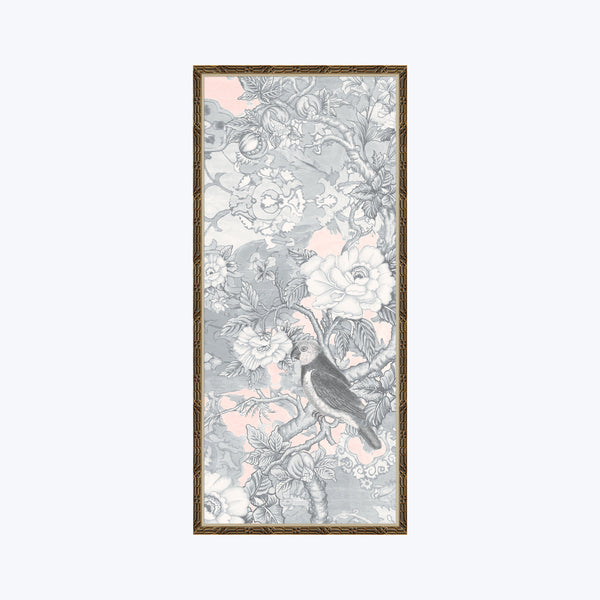 Elevate your space with the elegant whimsy of Yuki Osada’s Fantasy Panel II - Grey & Pink 1. Featuring ornate botanicals set against a pale pink backdrop, this exquisite panel makes a stunning addition to a bedroom, powder room, or entryway. Pair it with the Fantasy Panel II - Grey & Pink 2 for maximum impact. Yuki Osada is a celebrated CAD designer, graphic artist, and illustrator known for her playful prints.