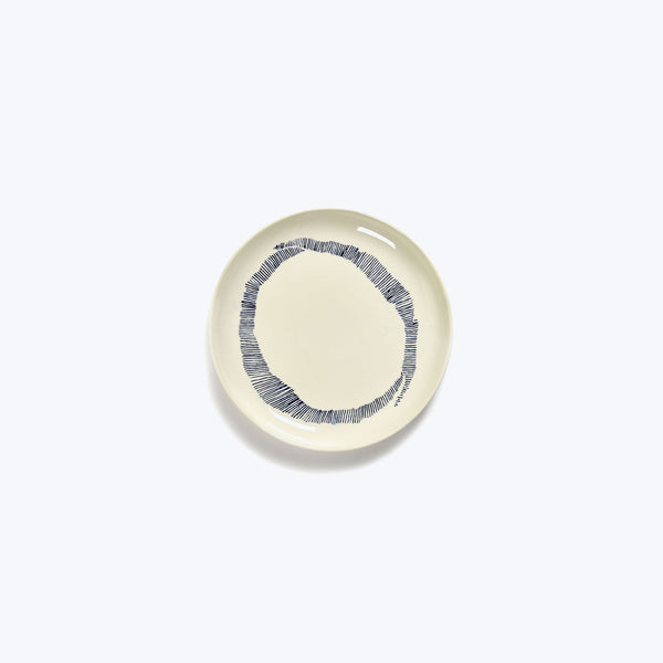 The Feast Dinnerware collection expresses the joy and whimsy in coming together and sharing food & stories. Imbued with eccentric patterns and a proud, vibrant aesthetic, each piece of stoneware puts forth a distinct funny feeling, unearthing the charm of a beautifully laid table. This collection was designed by British-Israeli chef Yotam Ottolenghi in collaboration with Serax.Can be used as either a dessert plate or salad plate, as they're generally very similar in size.