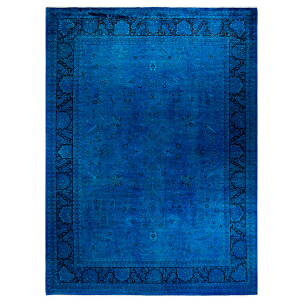 This Blue Overdyed Wool Rug - 9' 2" x 12' 3" is a hand-knotted piece from Pakistan. Featuring a rich blue color palette with intricate floral motifs, its elegant and sophisticated character is perfect for any formal space.