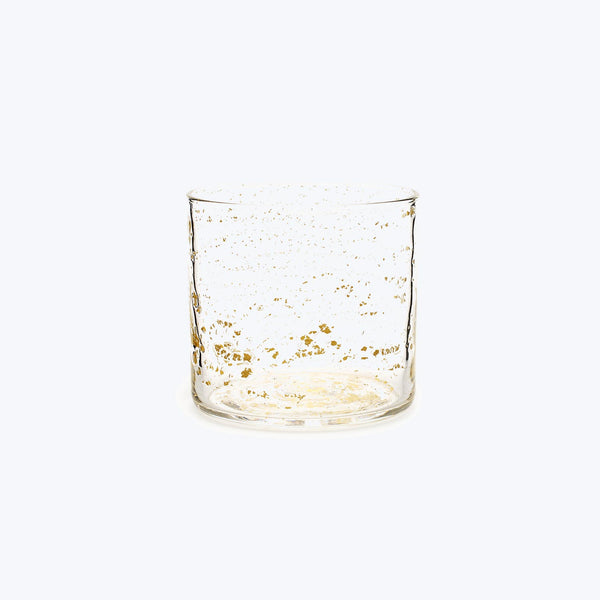 Allow your favorite drinks to truly shine in the Gold & Silver Flaked Whiskey Glasses. The Saban Glassware team of master glassblowers safely encases precious metals between two layers of glass.