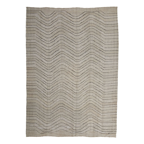 Highlighting the minimalist sophistication that complements modern and traditional interiors alike, this Beige Geometric Turkish Flatweave Wool Rug - 8' x 11' is handwoven in Turkey using hand-carded, pot-dyed durable wool. The natural pigments married with the geometric striped pattern create an organic texture in this small-batch collection of contemporary kilim rugs that will imbue all interiors with warmth and culture.This area rug is created on a loom and threaded through the warps, leaving it without a pile or knots...