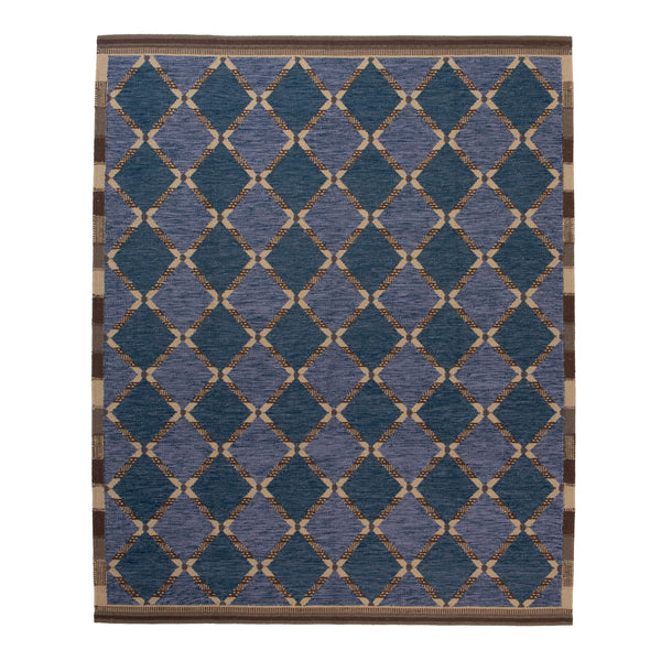 Blue Flatweave Wool Cotton Blend Rug - 8'2" x 9'10"