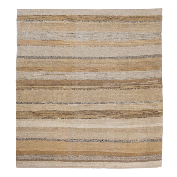 Beige Flatweave Wool Rug - 7'1" x 7'6"
