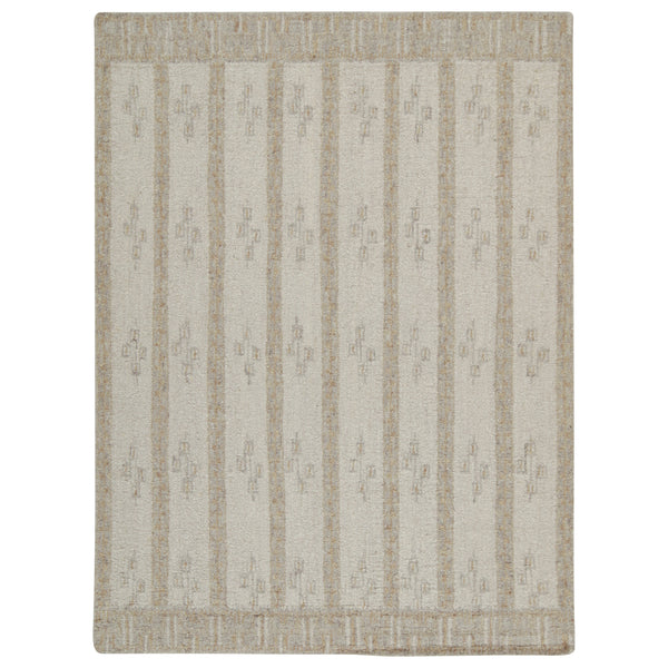 This hand-knotted Grey Moroccan Berber Wool Rug measures 7'9" x 10'6", offering a substantial size for various rooms. Crafted from wool, this area rug provides both comfort and durability. The design features a light grey ground complemented by structured vertical stripes in a slightly darker, tonal grey. Within these stripes, subtle geometric patterns, reminiscent of traditional Berber motifs, are intricately woven, adding depth and visual interest without overwhelming the space. Each rug is hand-knotted, a traditional construction method that ensures...
