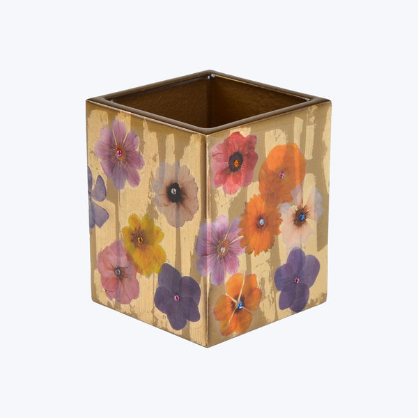 Bring artisanal beauty to your bathroom or vanity with the Fleur Brush Holder Gold by Mike + Ally. Perfect for storing brushes and other makeup utensils, this beautiful holder features vibrant wildflowers set against an abstract gold leaf backdrop. An exquisite addition to any space. Handcrafted in New York City.