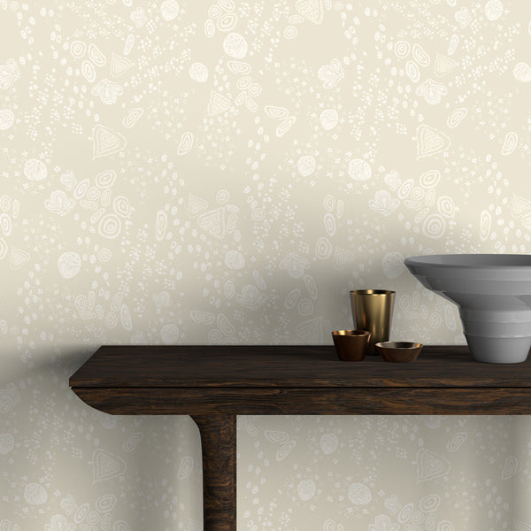 Add elegant whimsy to your walls with the Flowy Ballet Russe Geos by Yuki Osada. Crafted on watercolor paper, this beautiful wallpaper features a layered design of curved shapes and stardust patterns. An enchanting addition to a bedroom or walk-in closet. Available in blue, light blue, charcoal, green, and tan. Yuki Osada is a celebrated CAD designer, graphic artist, and illustrator known for her playful prints.