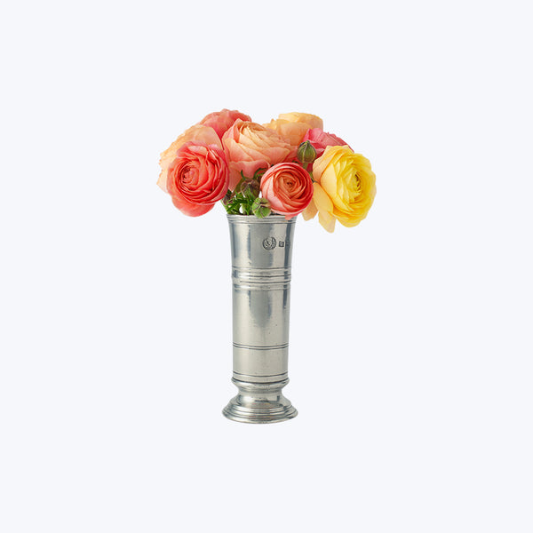 Bring old-world charm to your interiors with the Footed Cylinder Vase by MATCH. Featuring a classic cylindrical silhouette, this elegant vase is an excellent choice for single stems and small bouquets. A beautiful accent for bedside tables, desks, and dressers. The Footed Cylinder Vase is handcrafted in pewter by expert Italian artisans.