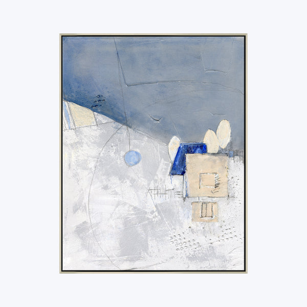 Discover Foothill by Jill Krasner. Featuring a serene palette of icy hues, this abstract winter landscape makes a beautiful addition to minimalist Scandinavian-inspired spaces. Jill Krasner’s art aims for immersion. Her multimedia works encourage the viewer to pause, observe, and explore.