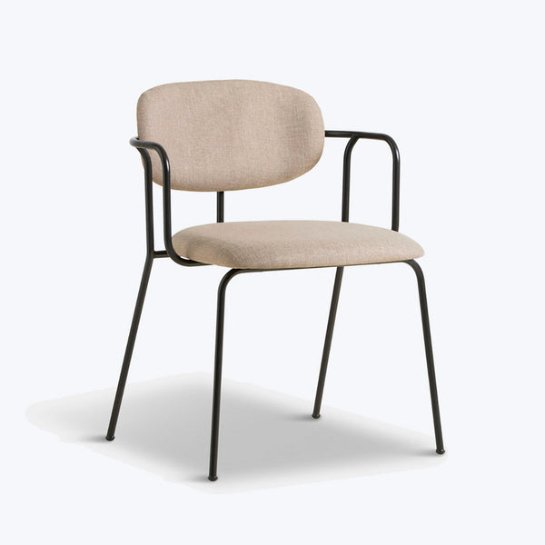 The Frame Dining Chair, designed by Mario Tsai Studio, is strongly inspired by the stringent outline of the scaffolding around buildings in Chinese cities. The lines of the dining chair's outer frame are horizontal and vertical, complementing the soft upholstery. The sleek backrest and seat are designed to follow the curves of the human body, providing a comfortable dining experience and cozy ambiance. WOUD is FSC Certified ensuring that products are crafted in a responsible and sustainable manner.