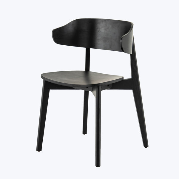 A fresh, exaggerated take on the wing-back dining chair. A mix of solid ash and ash veneer makes a modern and shapely seating statement with midcentury undertones.