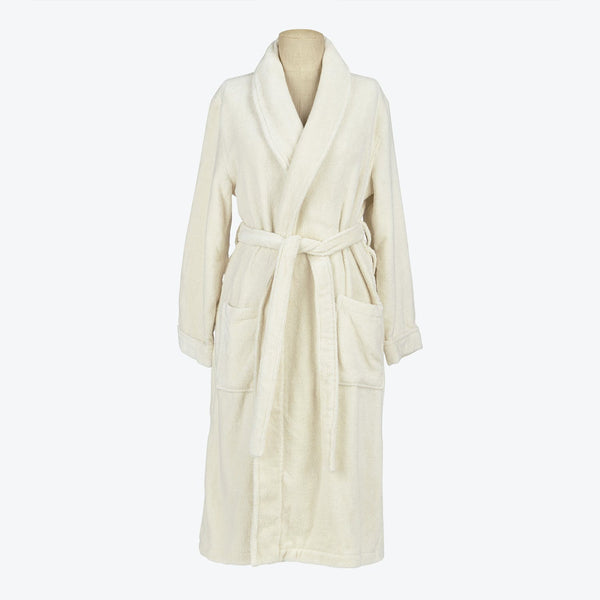 Exclusively at ABC, intricately woven, all-natural cotton bathrobes are crafted in Turkey - the same region that cultivated the art of steaming for spiritual cleansing. Chemical-free and ecologically sound, each robe is as organic as the spirit that inspired it.