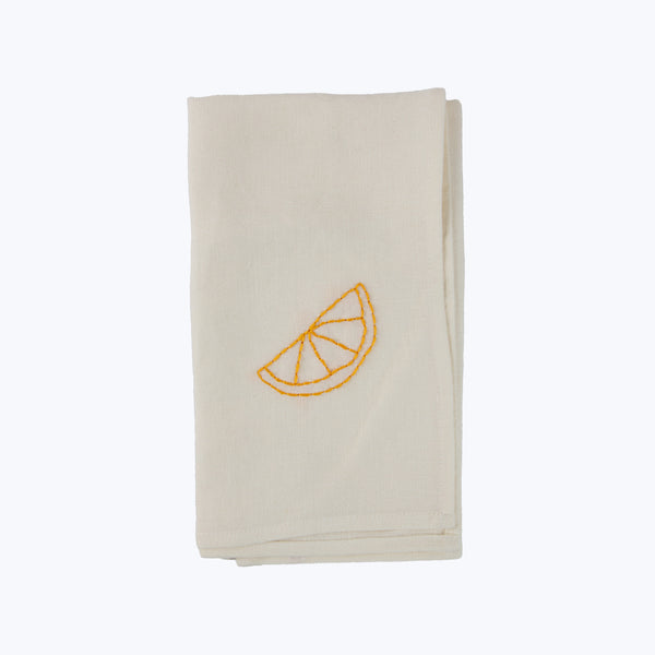 Discover the Garden Feast Napkin by Oeuvres Sensibles. Crafted in linen and hand embroidered with cotton thread, this elegant napkin is inspired by the quiet charm of a flourishing vegetable garden, where seasonal fruits and vegetables grow in harmony with nature. Designed to be mixed and matched, the Garden Feast Napkin is available in Lemon, Grape, Ladybug, Pomegranate, Fig, and Pear editions. Made in Oeuvres Sensibles’s atelier in Marseille.