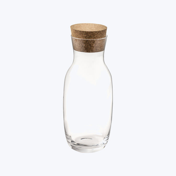 The Alegra Glass Carafe w/Cork Stopper is a simple shape with a sturdy, practical stopper that can be used to serve or store in the fridge. This glass carafe with lid is ideal for holding water, wine, juice, and more. Mouth blown and hand finished by master artisans.